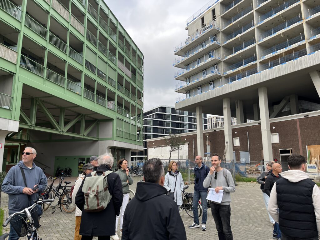 In oktober stapte Leon Sebregts (architect en architectuurhistoricus) met een enthousiaste groep op de fiets. De route voerde langs de stedelijke transformatiegebieden rond het Merwedekanaal en de Spoorzones. Onderweg zagen de deelnemers onder meer de vorderende bouw van De Nieuwe Defensie, de Cereolfabriek en de bouwplaats aan de Thomas à Kempislaan. Ook Cartesius en Wisselspoor, met hun kleurrijke en eigentijdse woningbouw, maakte veel indruk.