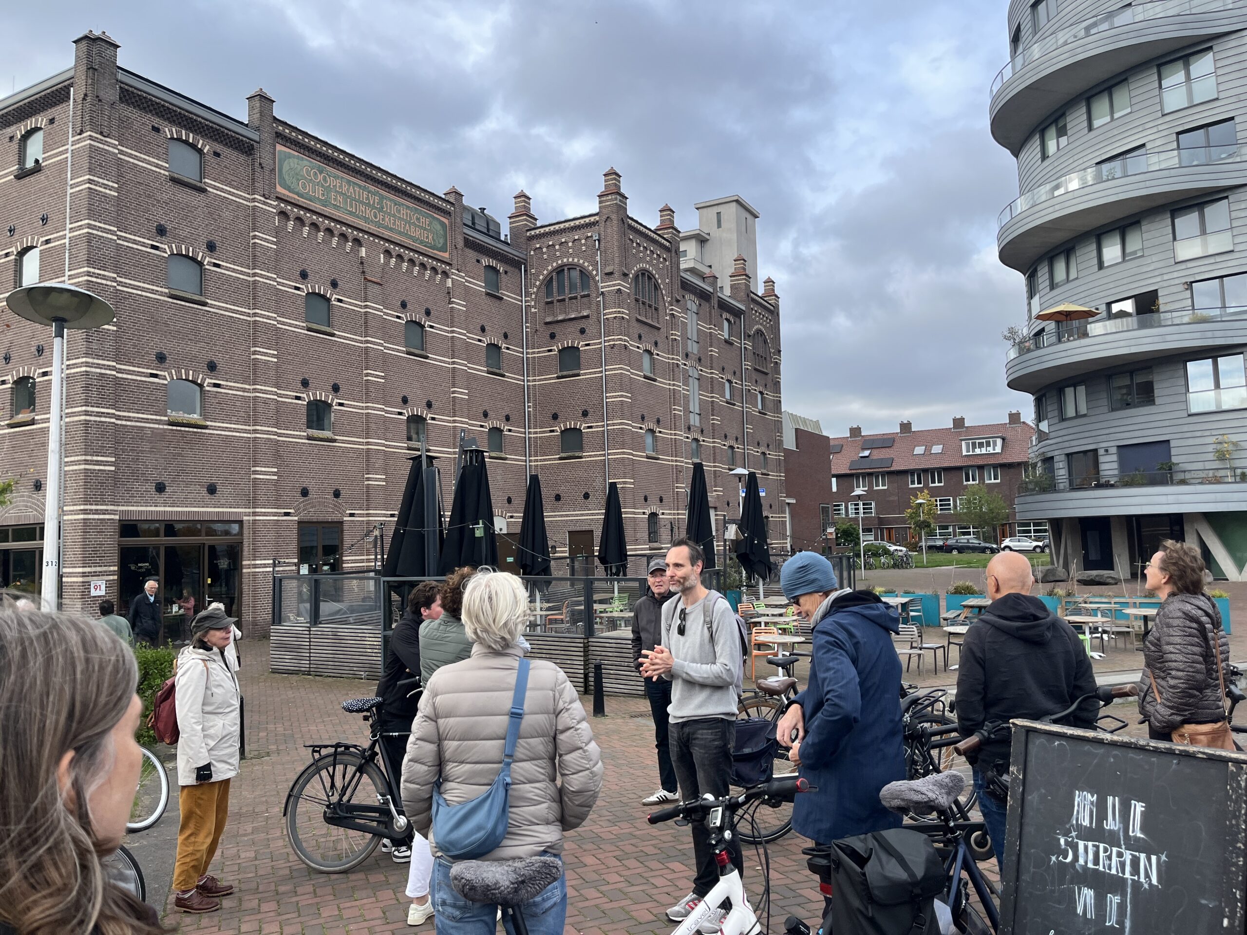 In oktober stapte Leon Sebregts (architect en architectuurhistoricus) met een enthousiaste groep op de fiets. De route voerde langs de stedelijke transformatiegebieden rond het Merwedekanaal en de Spoorzones. Onderweg zagen de deelnemers onder meer de vorderende bouw van De Nieuwe Defensie, de Cereolfabriek en de bouwplaats aan de Thomas à Kempislaan. Ook Cartesius en Wisselspoor, met hun kleurrijke en eigentijdse woningbouw, maakte veel indruk.